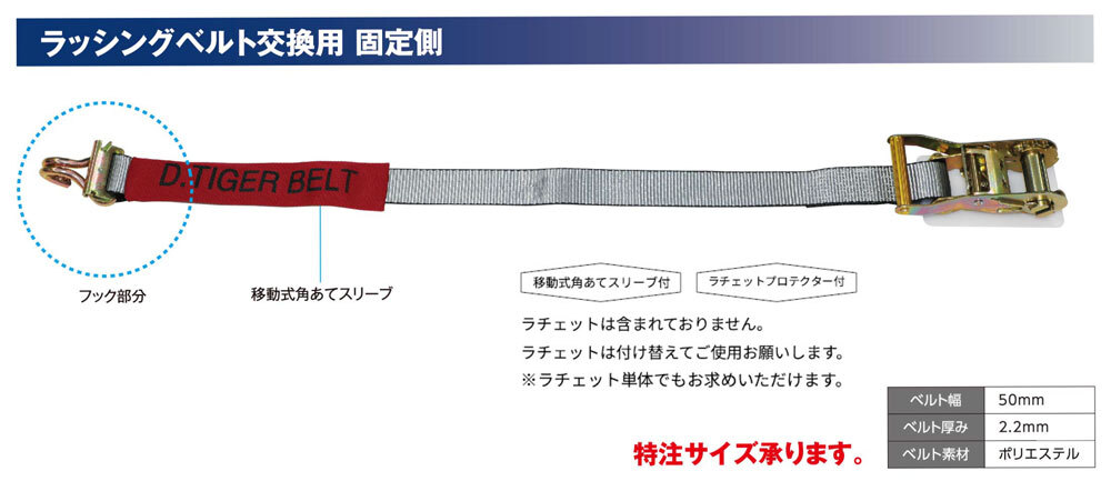 50mm幅のラッシングベルトにはラチェットプロテクターと保護スリーブが固定側と巻き取り側の両方に付いているため、荷物の角での摩耗からベルトを守ることができます。